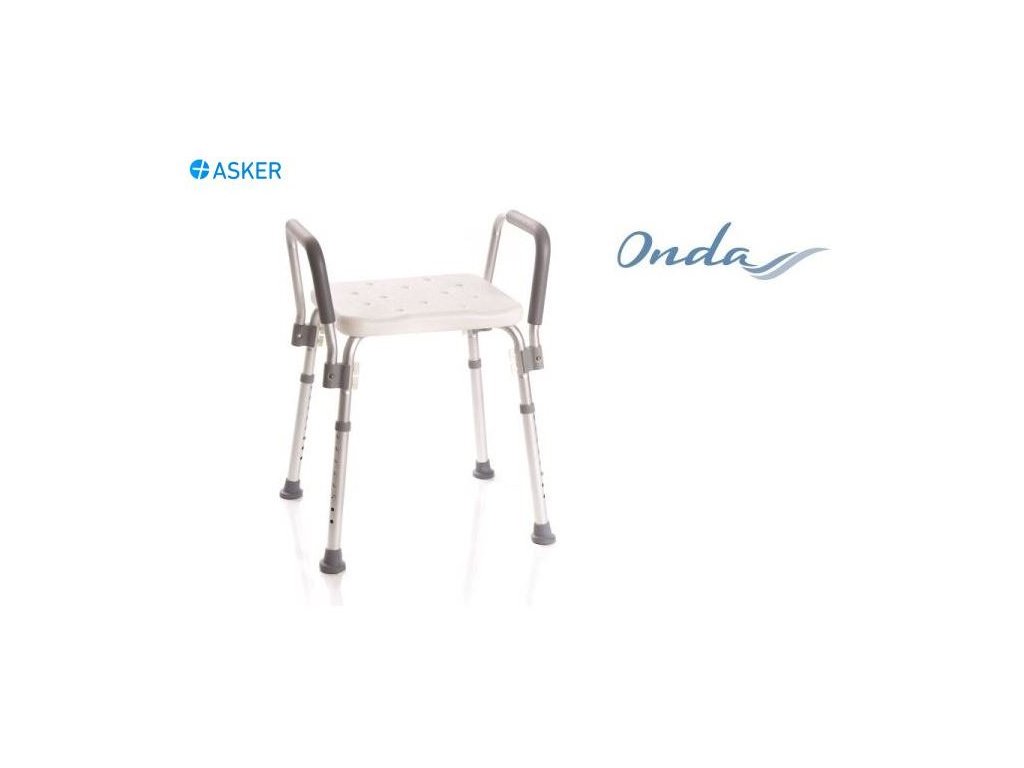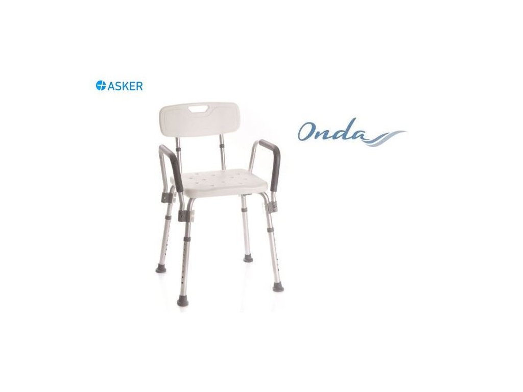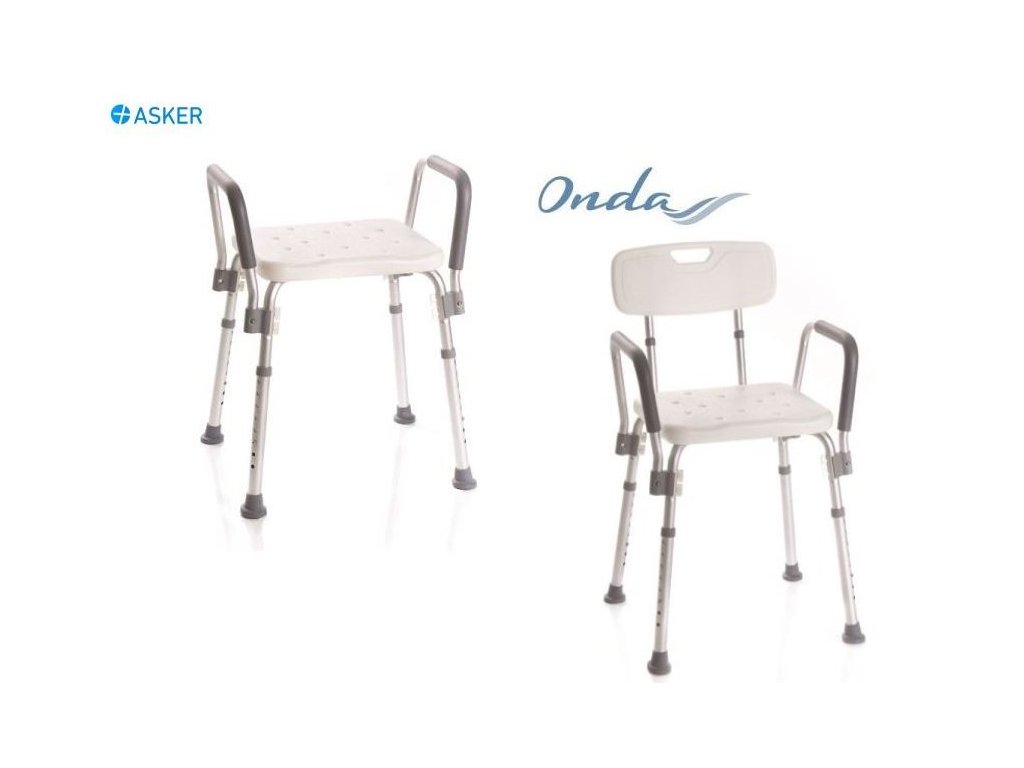 Výškově nastavitelná židle do sprchy v bílém provedení. Židle disponuje plastovým sedátkem a praktickými područkami na obou stranách. Nohy jsou opatřeny protiskluzovými nástavci.